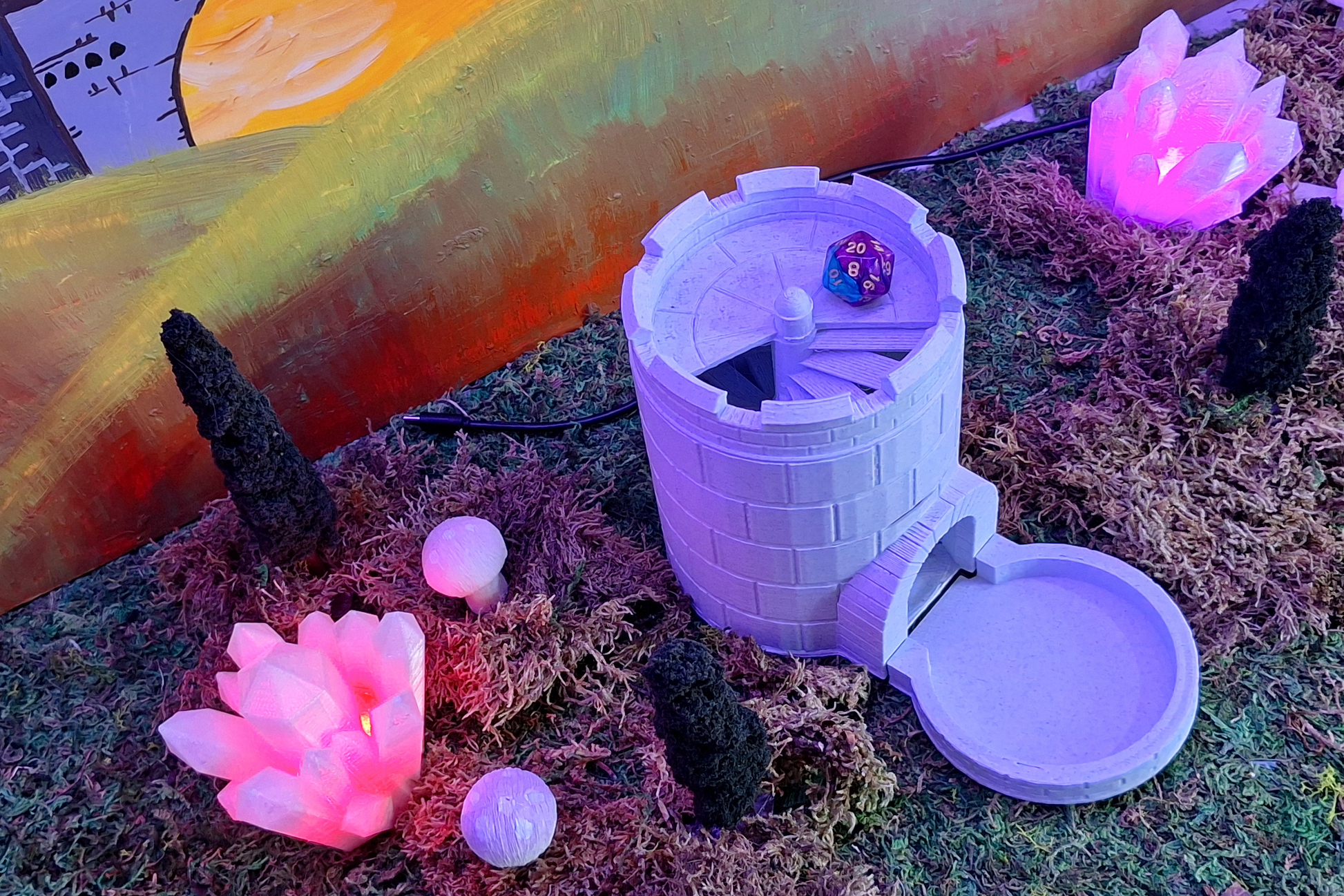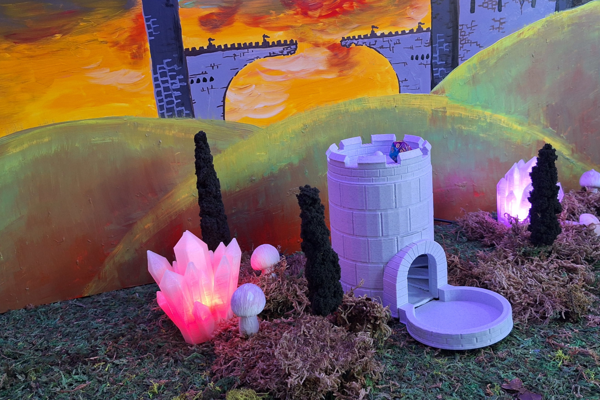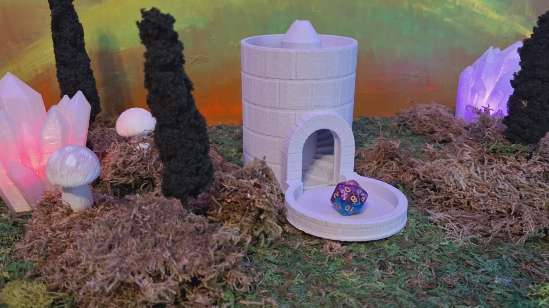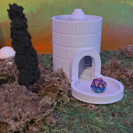 Drop your dice through the tower’s top and watch (and hear) them cascade through the inner battlements, clattering satisfyingly as they tumble out through the arched gate below. Whether you’re defending a kingdom or storming a castle, this tower delivers drama and elegance with every roll.
