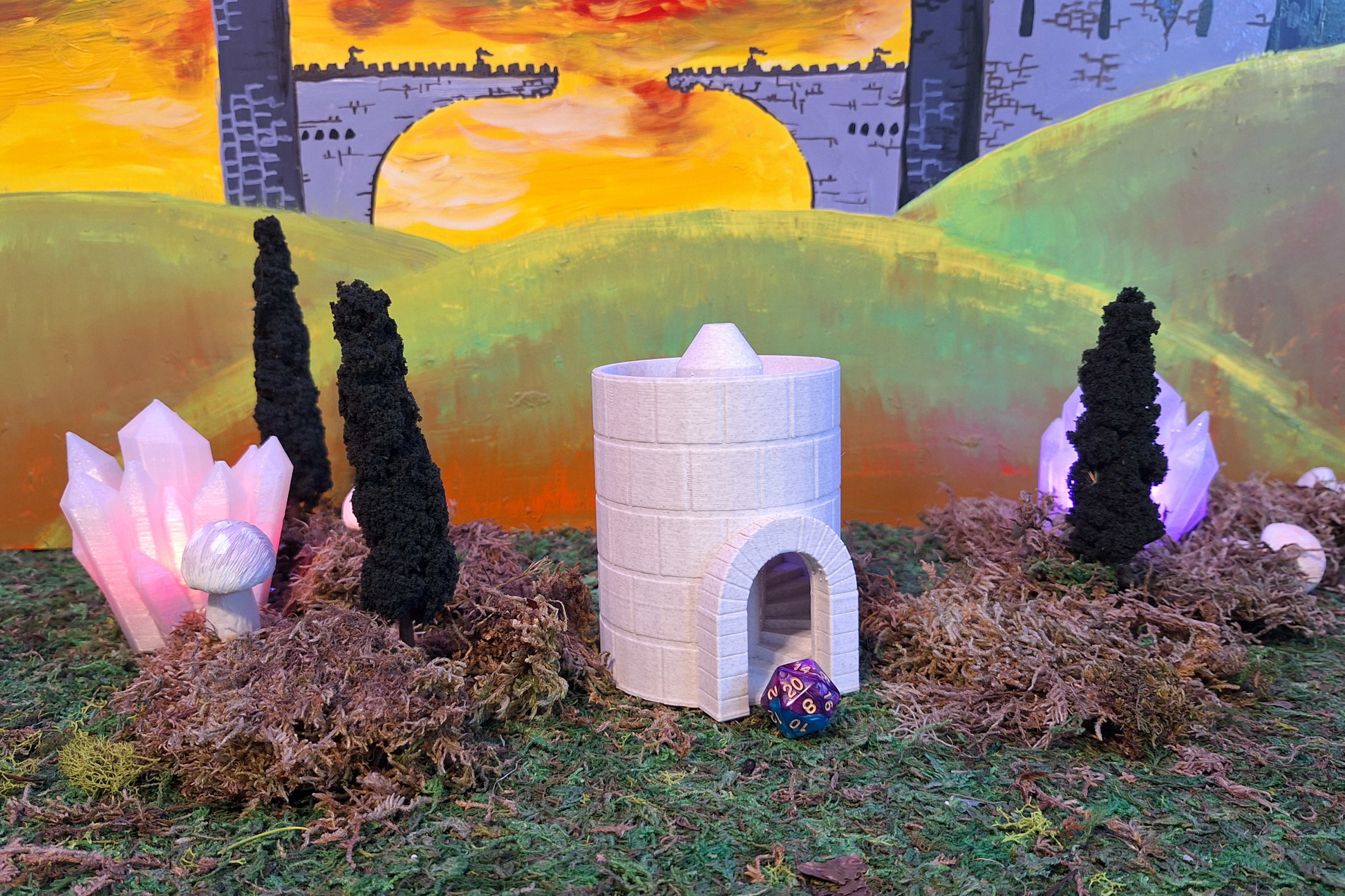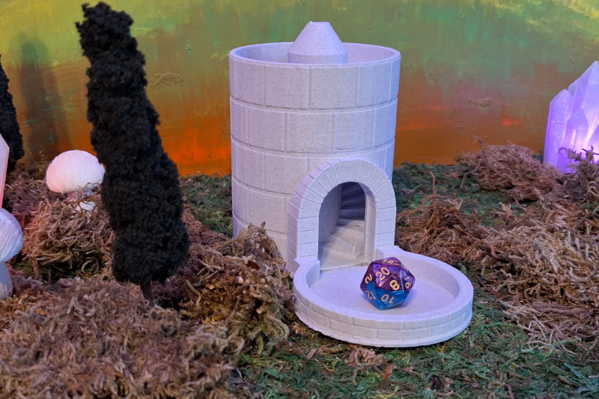 Roll like royalty with this Marble Castle Dice Tower - a miniature stronghold for your favorite dice! Designed to resemble a towering medieval fortress, this fantasy dice roller brings the grandeur of ancient stone walls and gothic battlements to your game table. 3D printed using high-quality marble PLA filament, it boasts a stunning stone-like finish that adds both style and thematic immersion to your sessions.