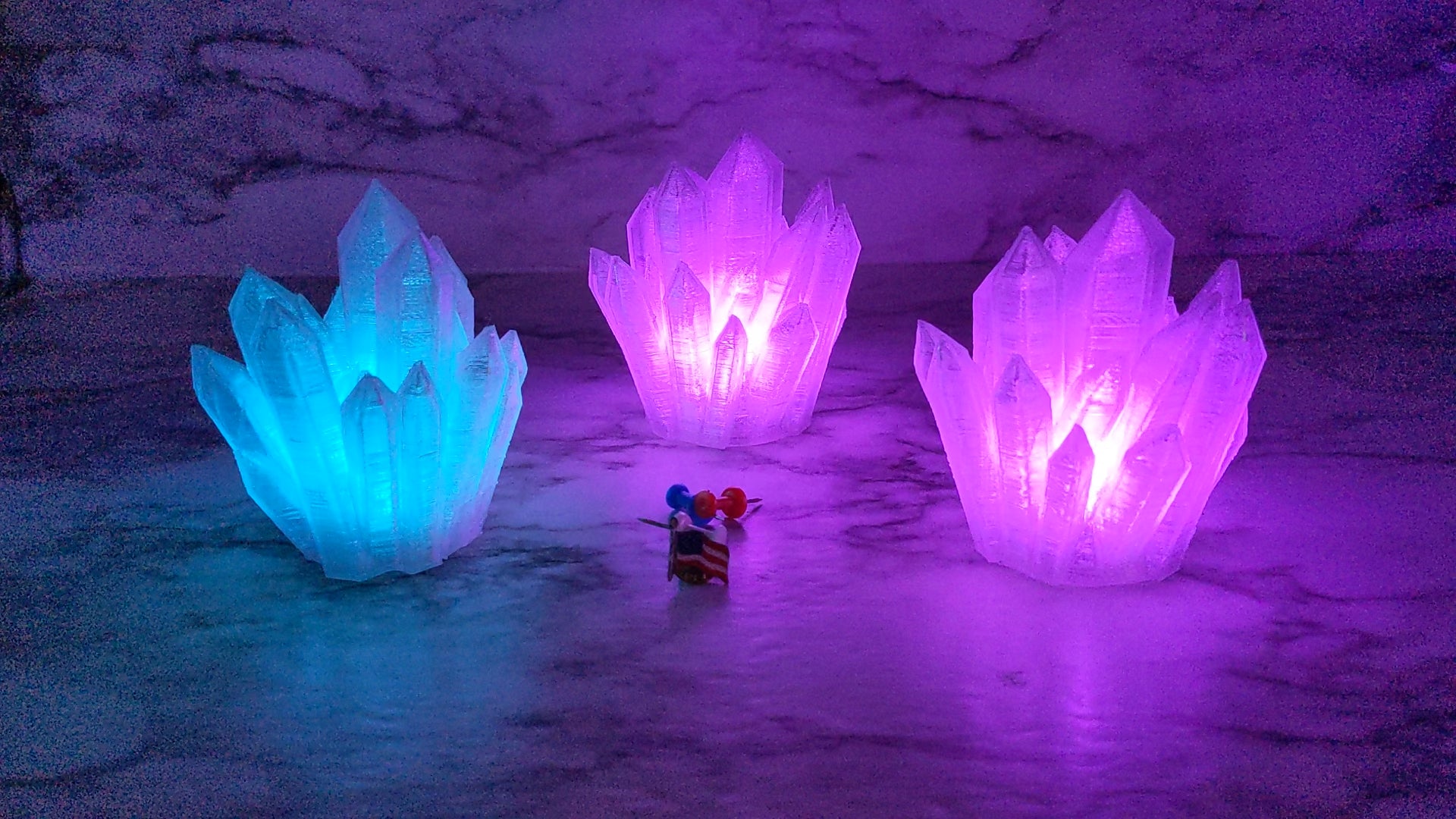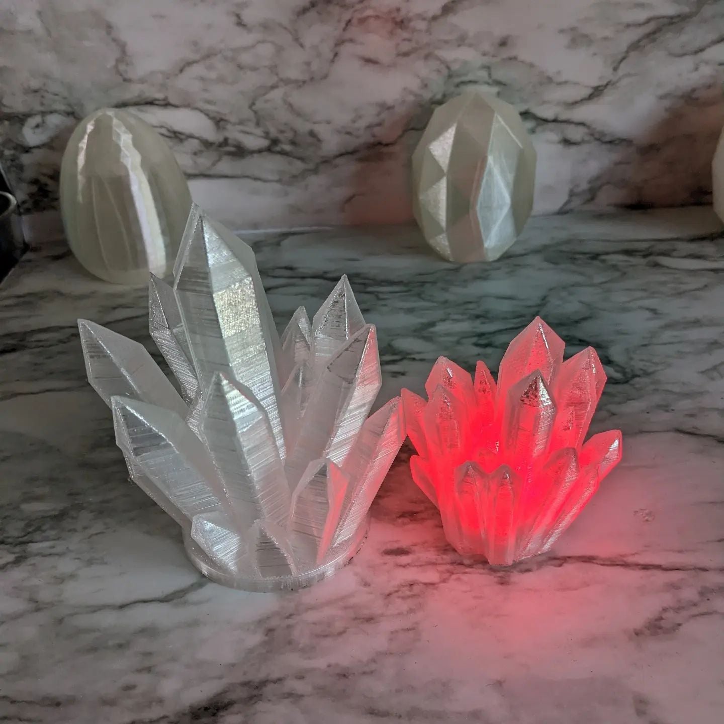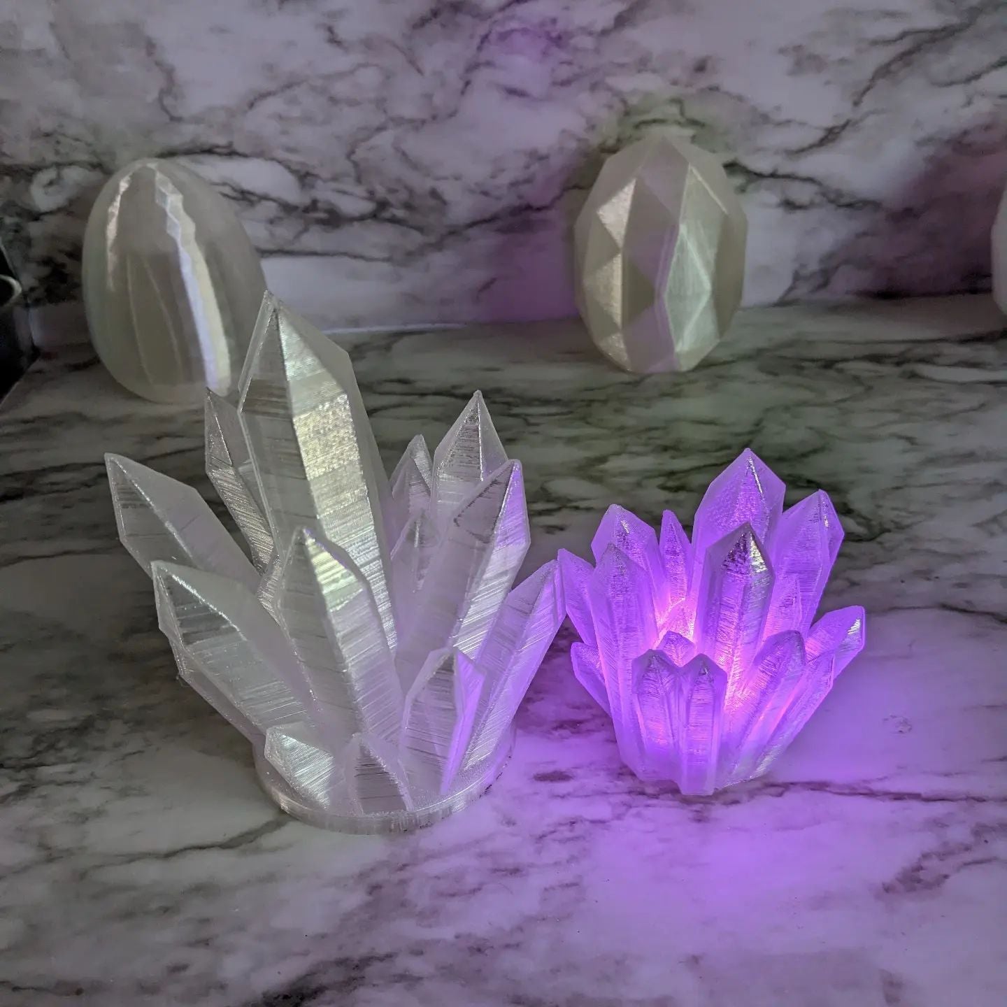 These 3D printed miniature crystal lamps are some of our newest products, they also come with RGB LED lights already inside them, as well as remote controls! Even when off, the crystals allow light to shimmer through them in the most unique and beautiful ways, and are also great for use as accent pieces or night-lights!