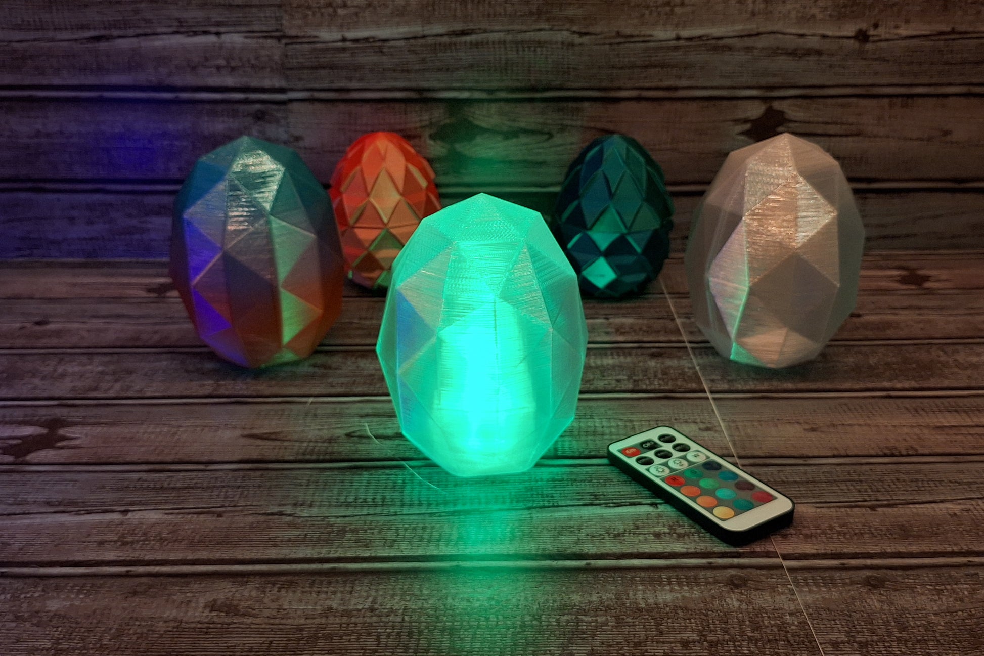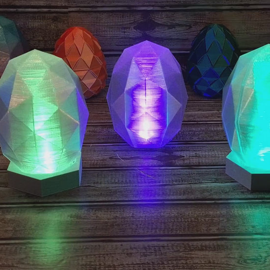 Unleash a touch of fantasy and magic in any room with our new Wireless Color-Changing 3D Printed Dragon Egg Lamp! Crafted from durable, translucent PLA plastic, this enchanting lamp glows from within using a vibrant RGB LED light that can be controlled entirely by remote. Powered by batteries (included), it’s a fully portable lighting solution—perfect for adding mystical ambiance wherever your imagination takes you.