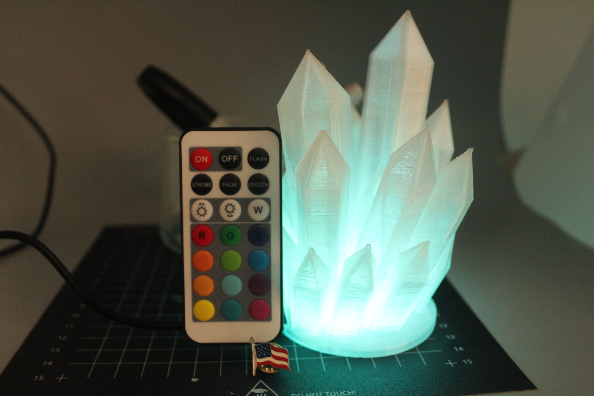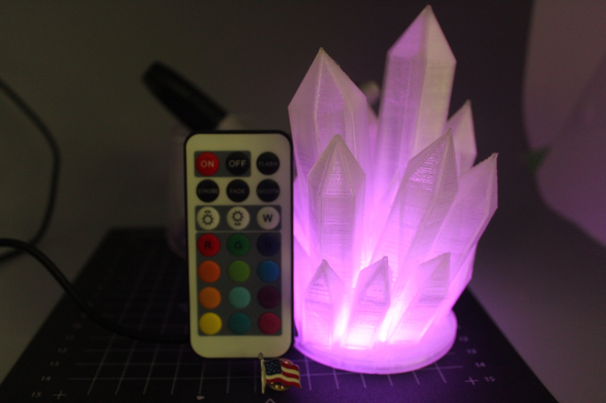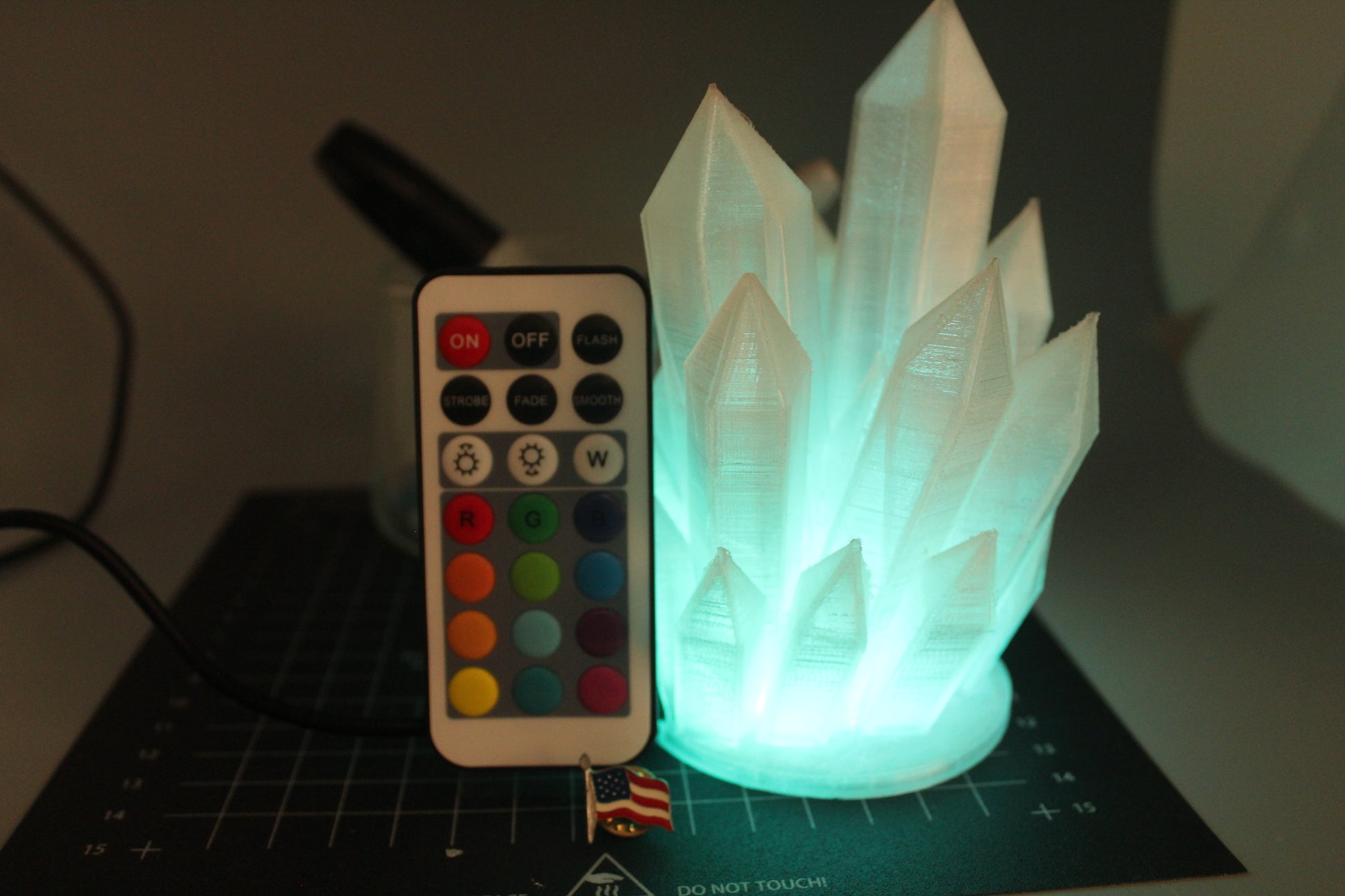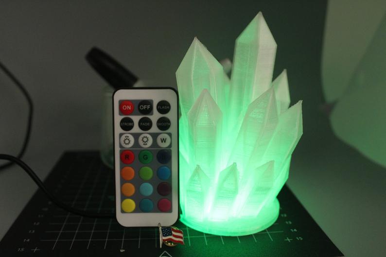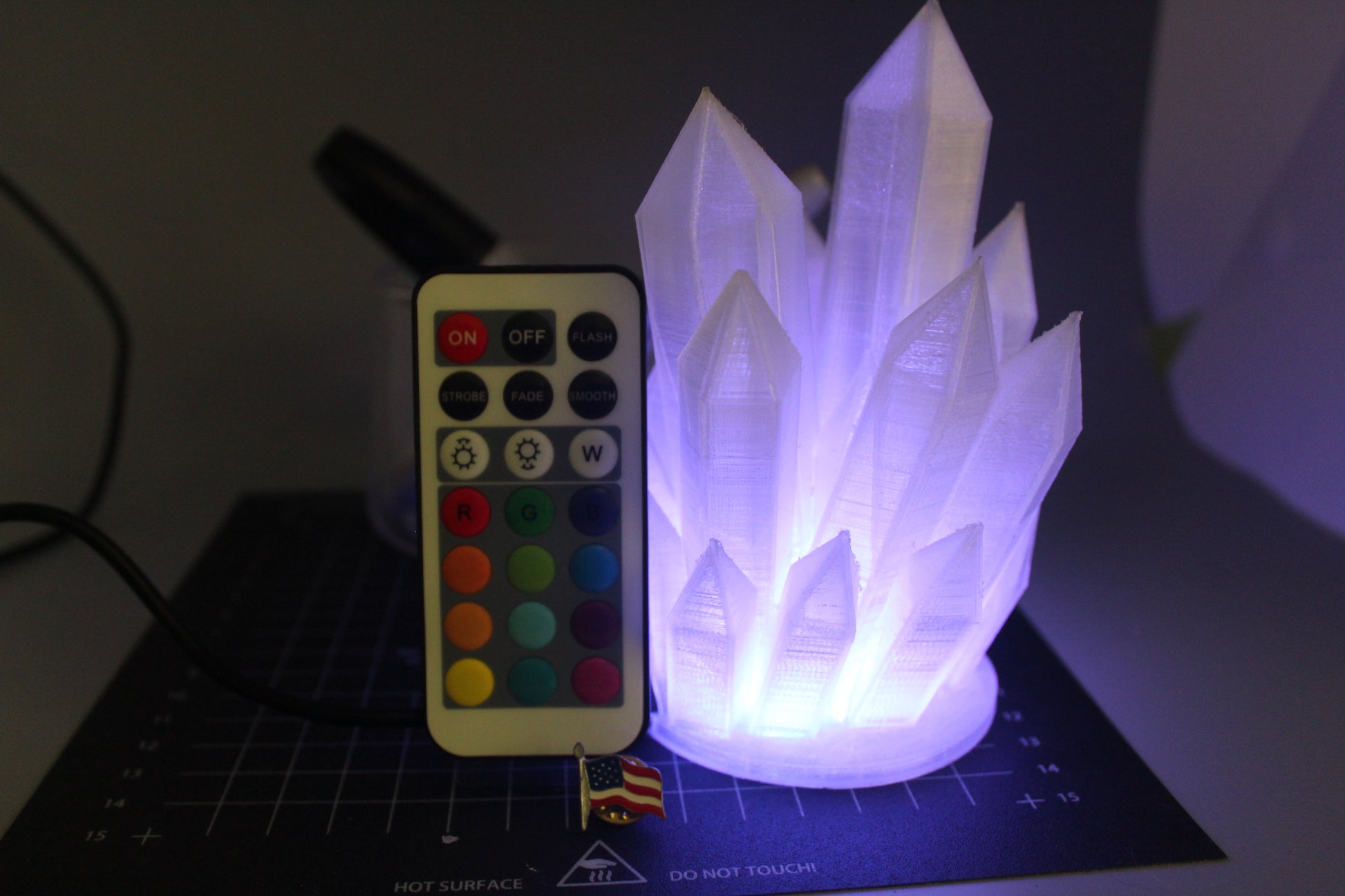 Color-Changing 3D Printed Crystal Lamp. Remotely controllable with US power adapter/cable and remote included!