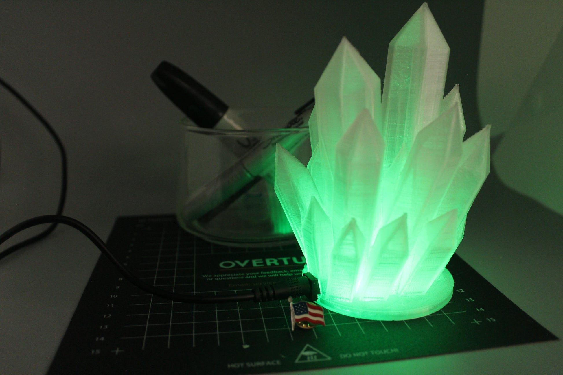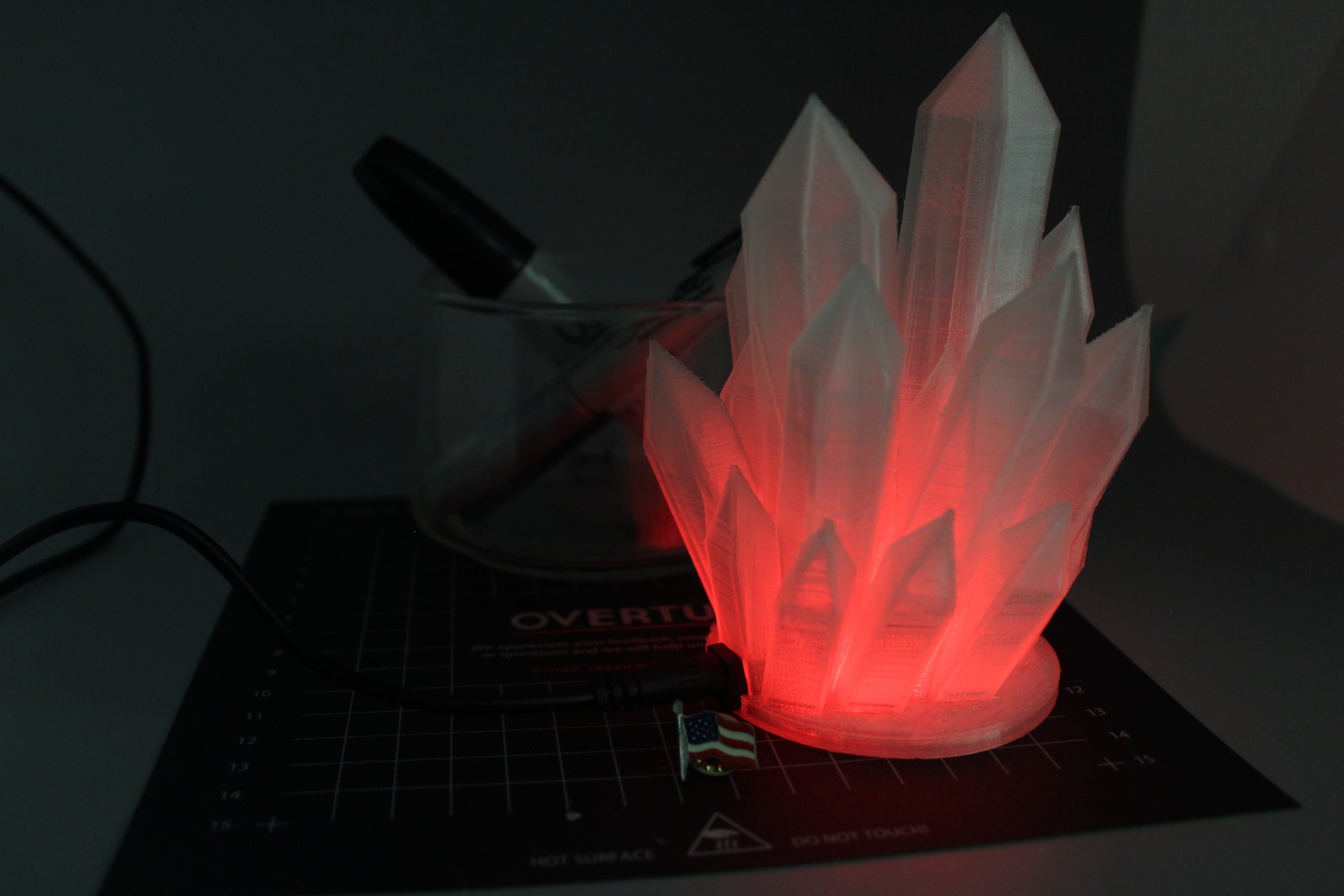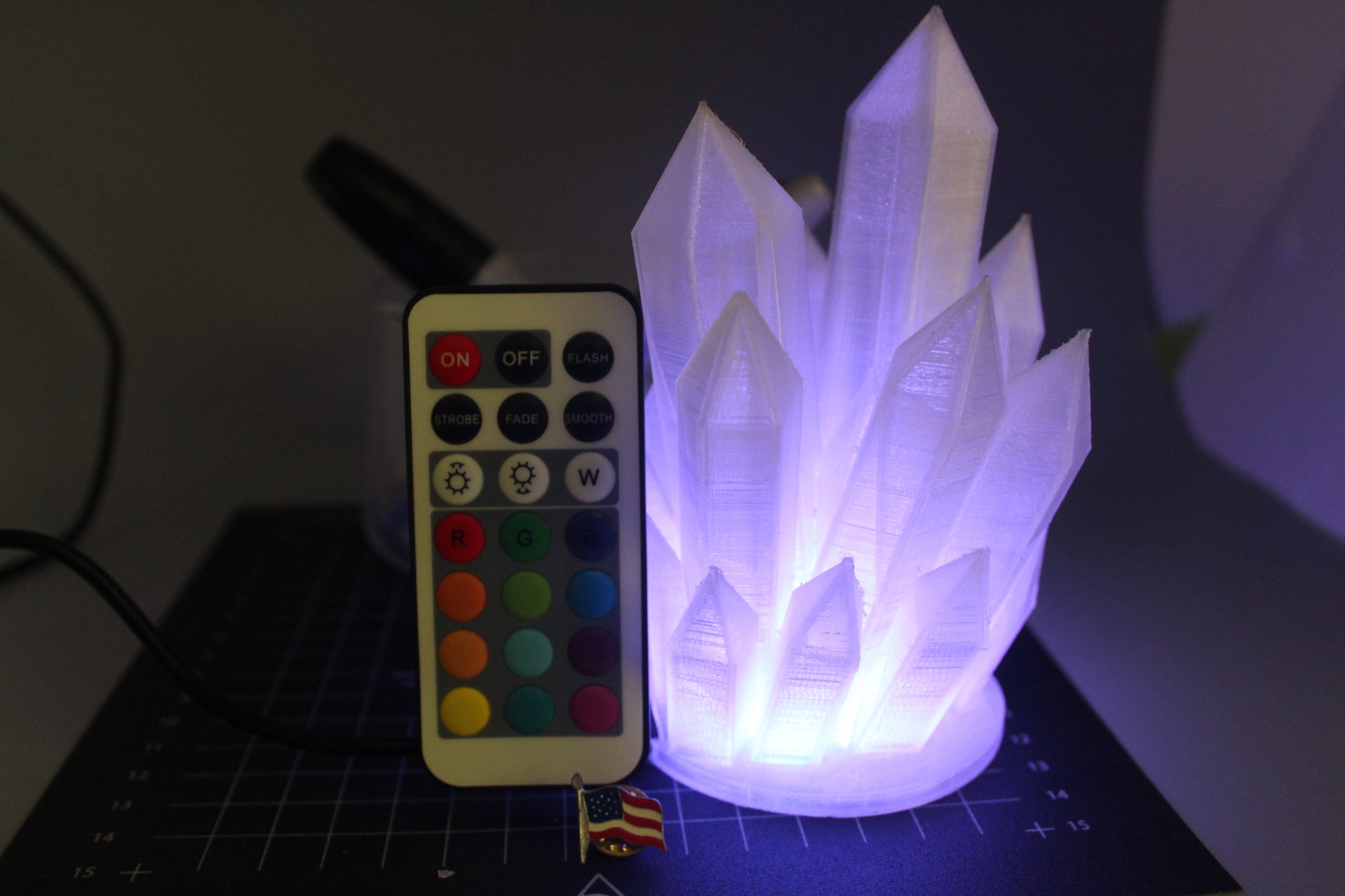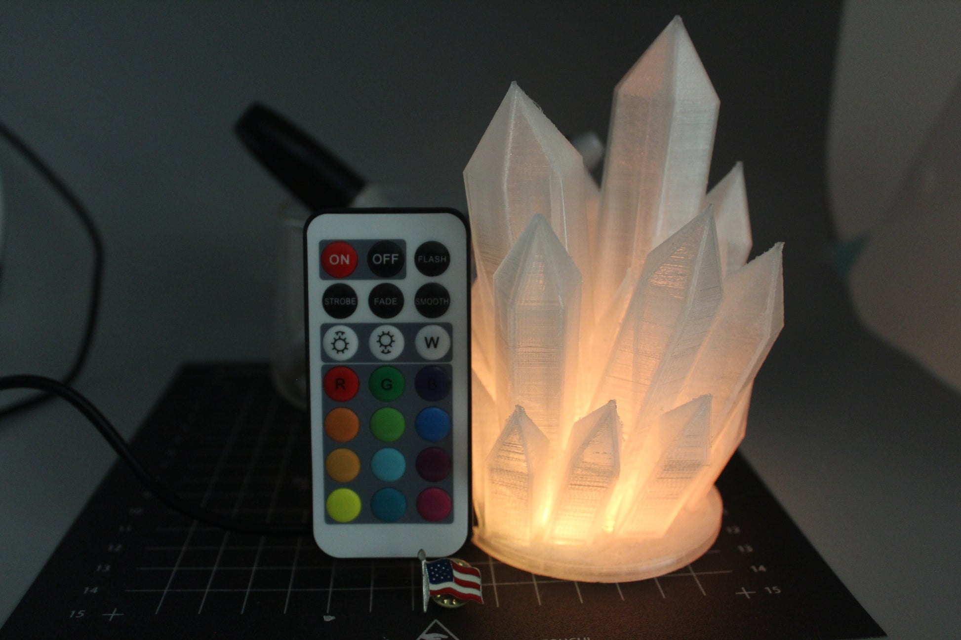 Color-Changing 3D Printed Crystal Lamp. Remotely controllable with US power adapter/cable and remote included!