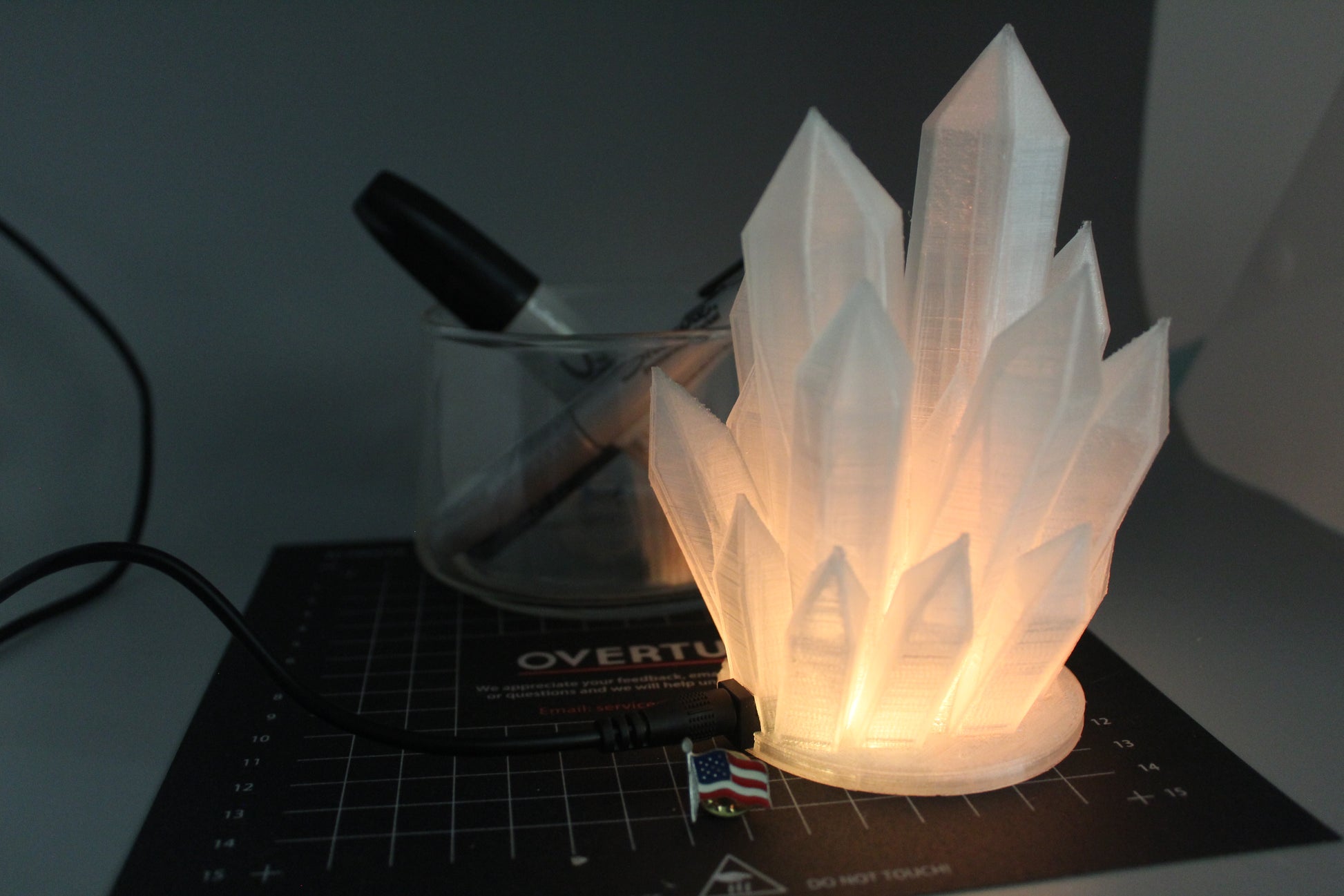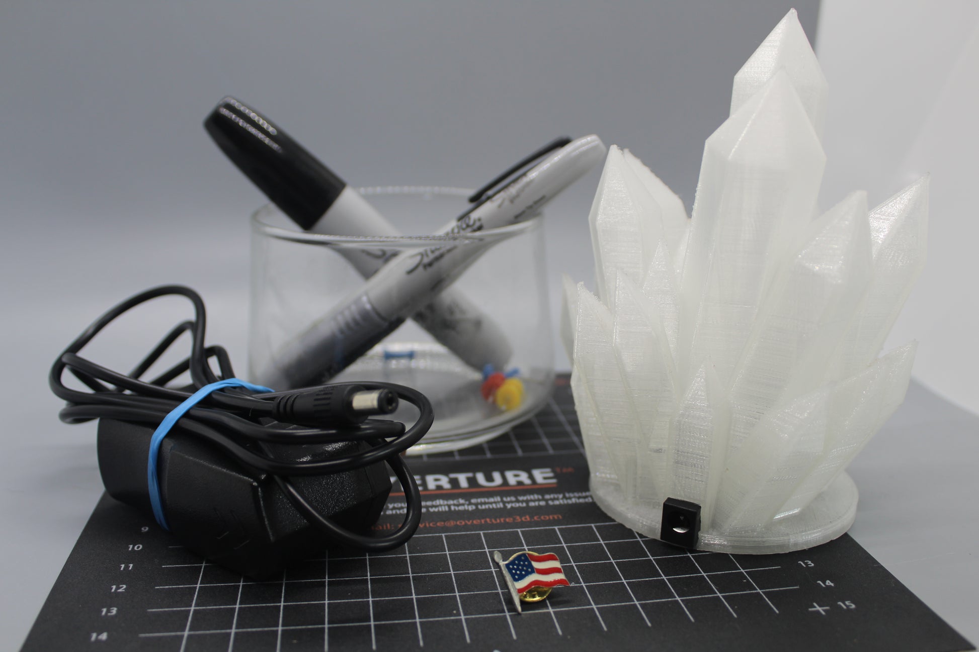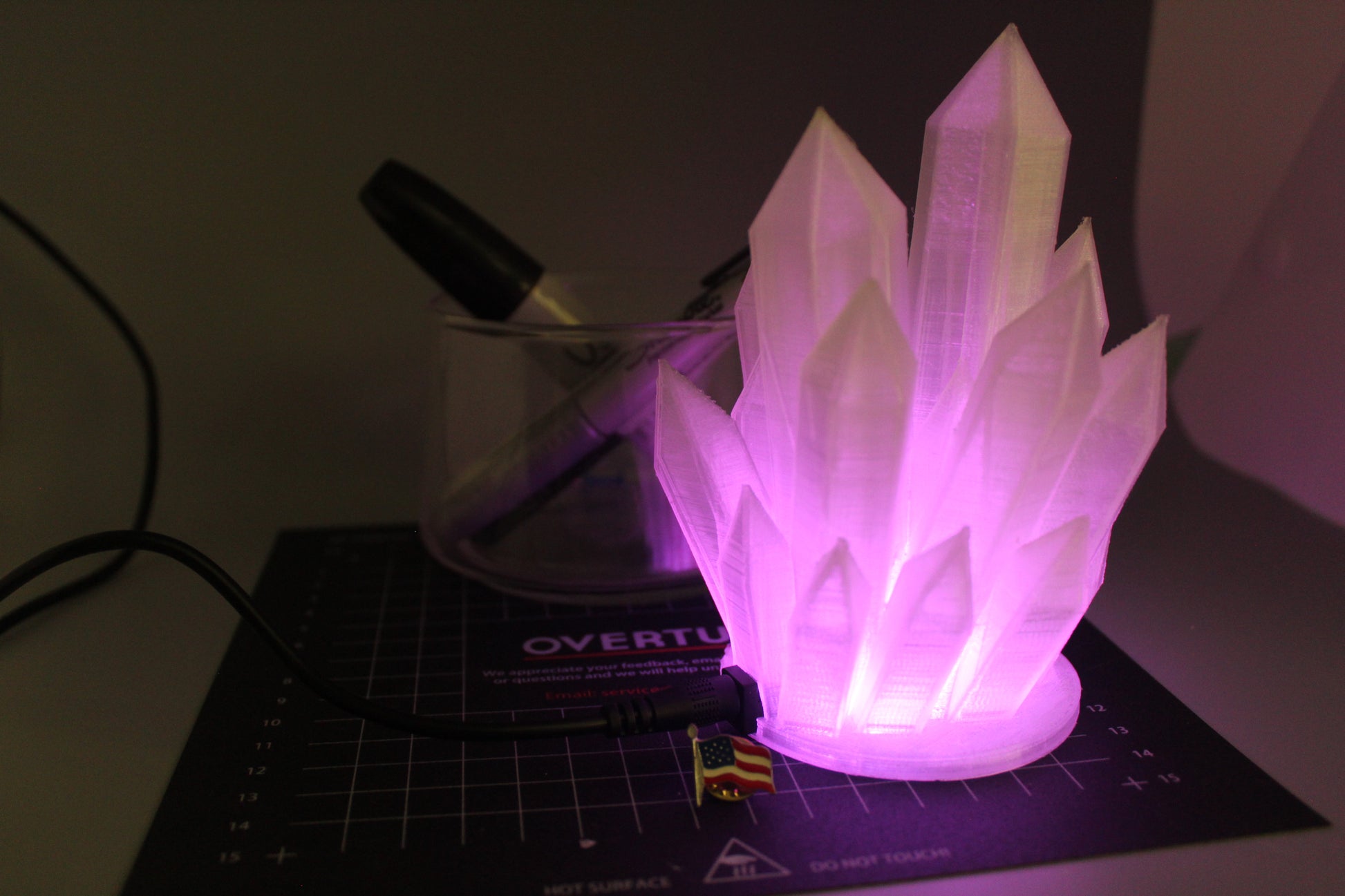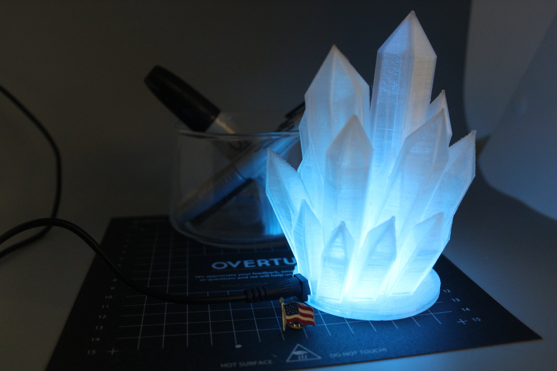 Color-Changing 3D Printed Crystal Lamp. Remotely controllable with US power adapter/cable and remote included!